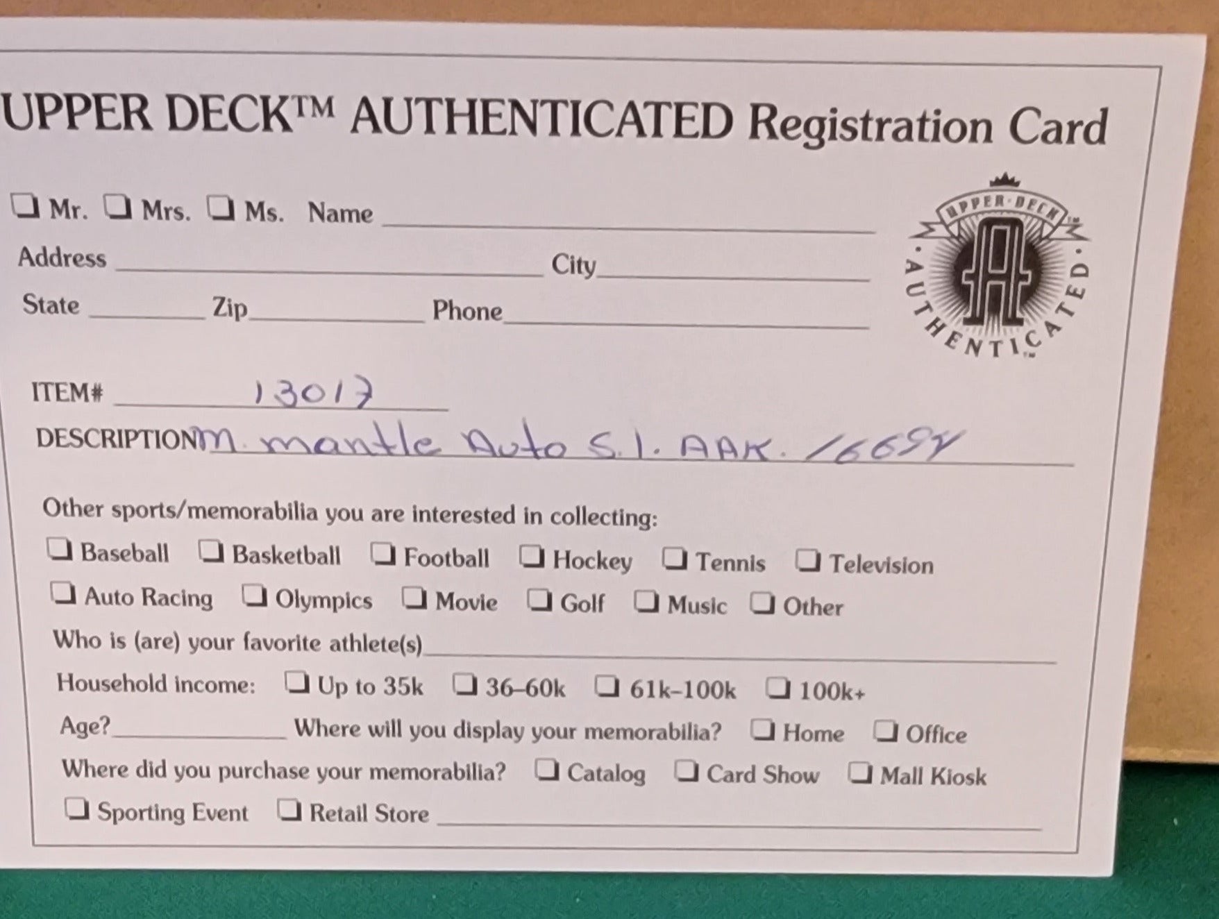 Comes with Certificate Of Authenticity from Upper Deck